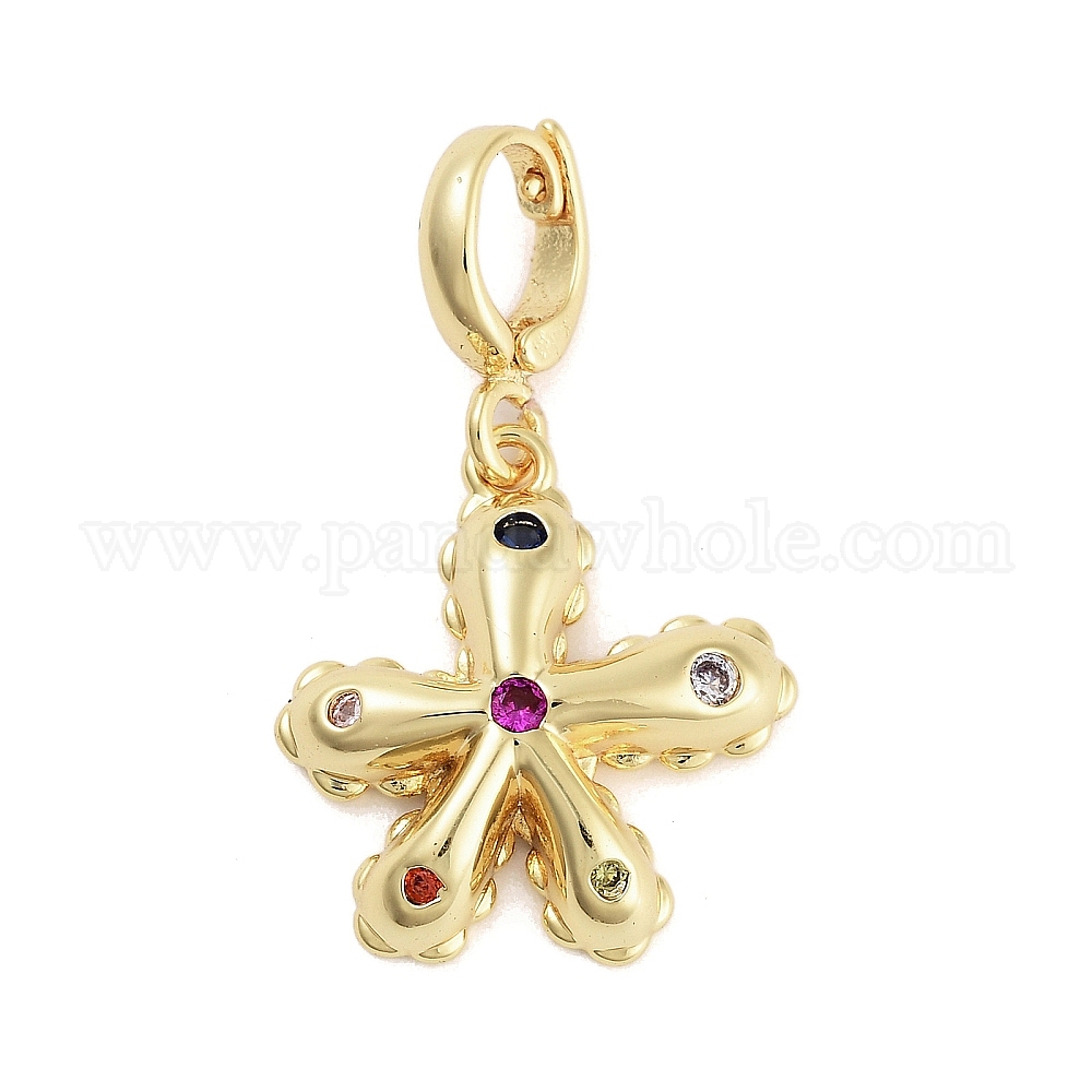 • Настоящее золото 18K Латунь с кубическим цирконием подвеской, , реальный 18 k позолоченный, 19x18x4 мм, отверстие : 5x6 мм