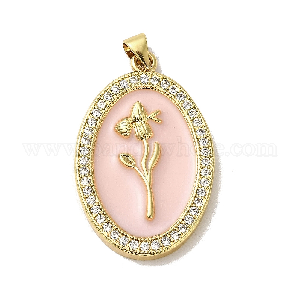 Латунные микро проложить кубического циркония подвески, с эмалью, без кадмия, без никеля и без свинца, реальный 18 k позолоченный, овальные с цветком