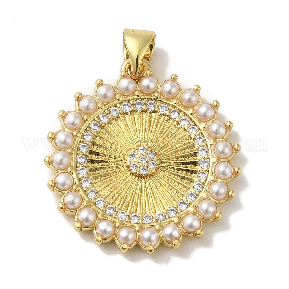 • Настоящее золото 18K Стойка металлическая латунная микропрофилированная кубическая циркония подвески, с abs имитационными жемчужными бусинами , без кадмия и без свинца, долговечный, плоско-круглые, реальный 18 k позолоченный, 23x21x3 мм, отверстие : 3.5x3.5 мм