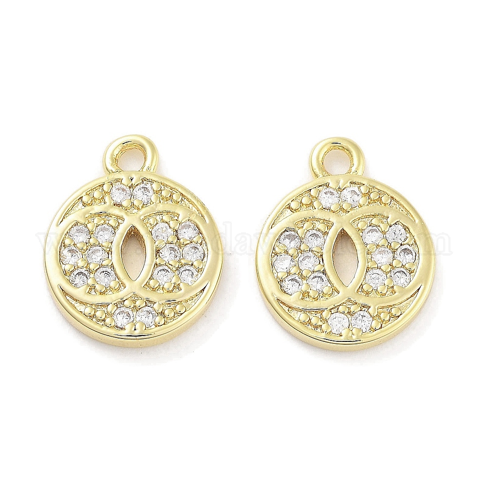 Латунные микропаве прозрачные подвески с фианитом, плоско-круглые