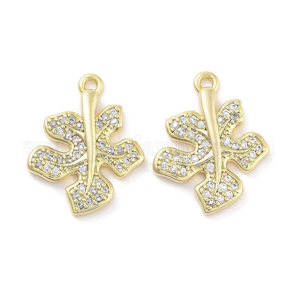 • Настоящее золото 18K Латунные микропаве прозрачные подвески с фианитом, лист, реальный 18 k позолоченный, 23x18x3 мм, отверстие : 1.2 мм