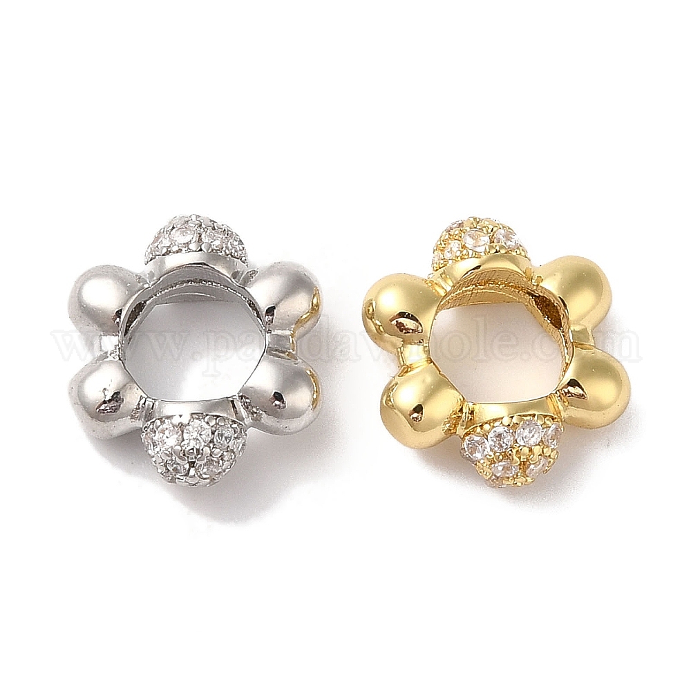 • Платина Подвески из латуни и кубического циркония, без кадмия и без свинца, долговечный, цветок, платина, 10.5x9.5x4 мм, отверстие : 5 мм