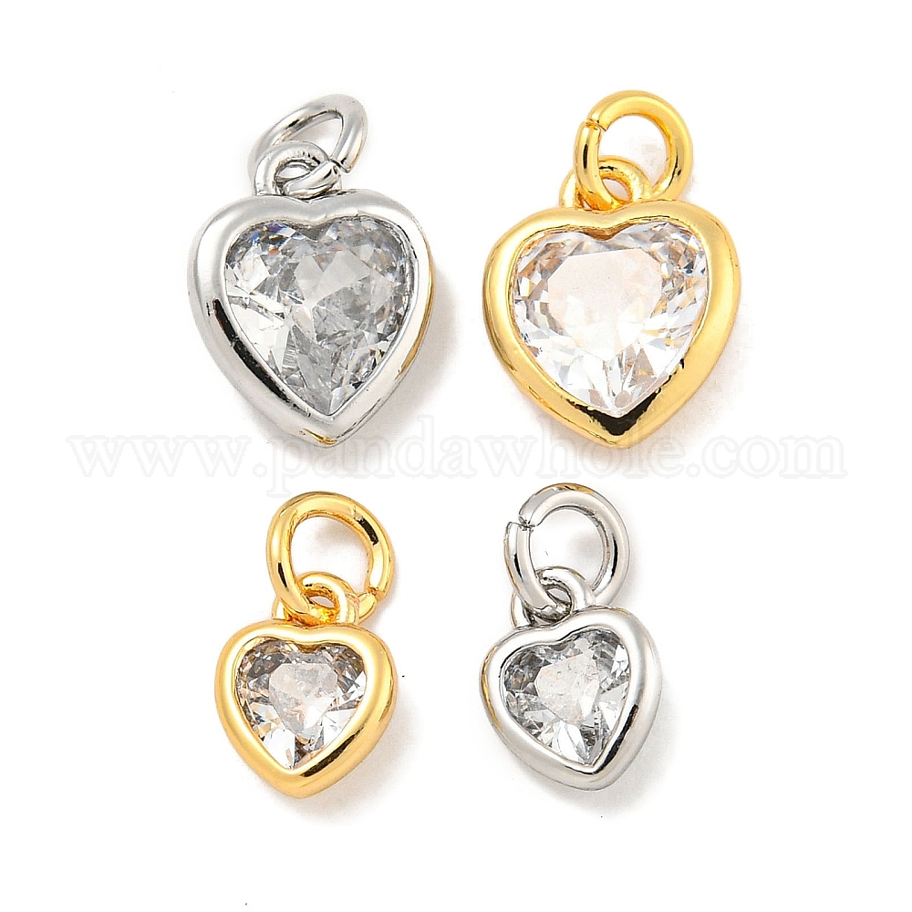 Латунные микропаве прозрачные подвески с фианитом, без кадмия, без никеля и без свинца, сердце, с целью перехода в кольце (02TK2G)