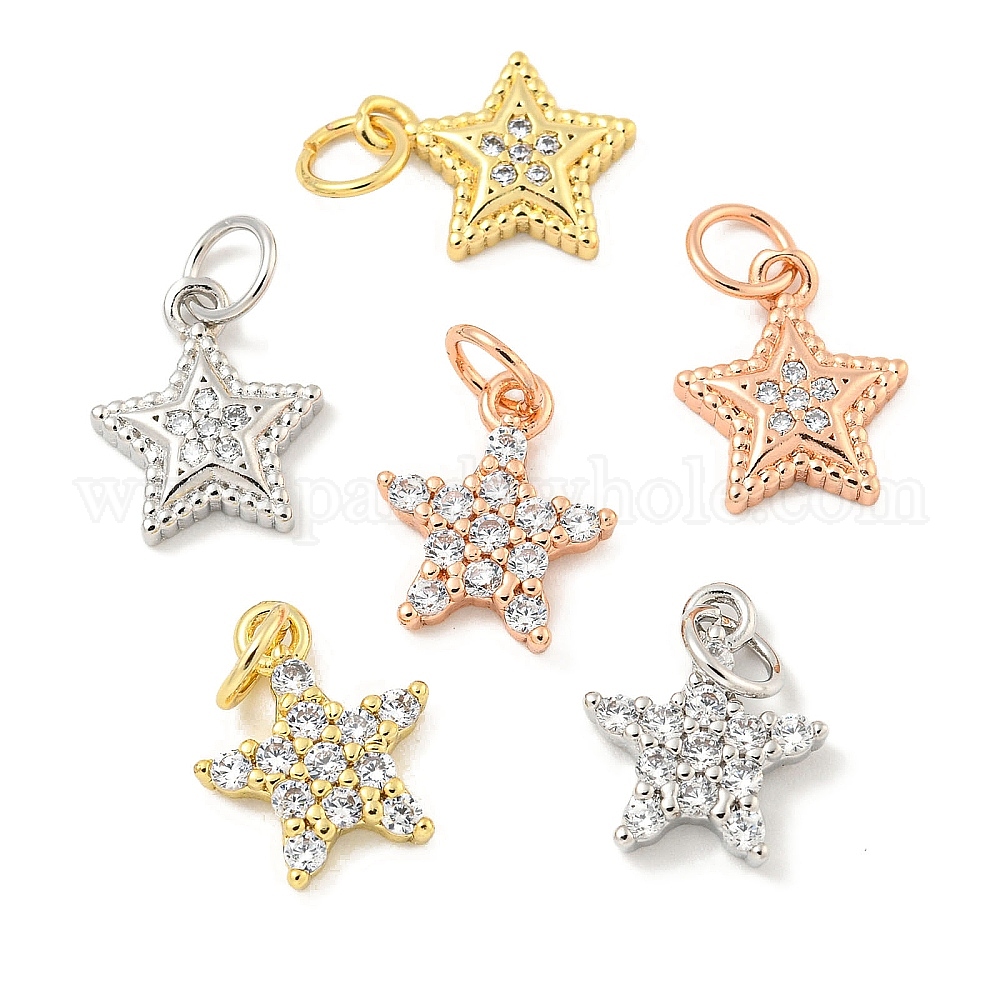 Покрытие стойки латунь микропаве прозрачные подвески из кубического циркония, долговечный, с прыжковых колец, без свинца и без кадмия, звезда