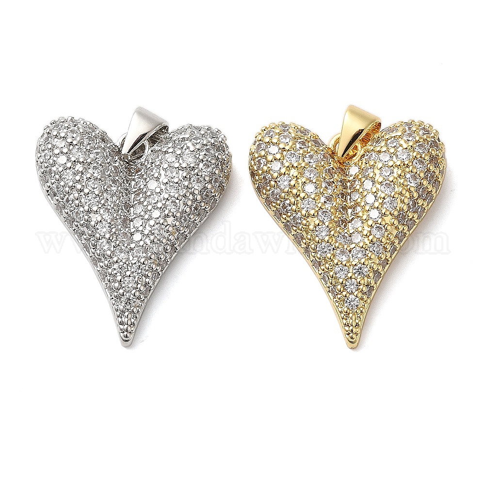 Латунные микропаве прозрачные подвески с фианитом, без кадмия и без свинца, сердце