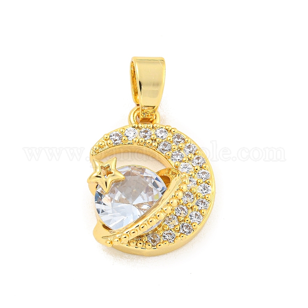 Латунные микропаве прозрачные подвески с фианитом, Луна и звезды, реальный 18 k позолоченный