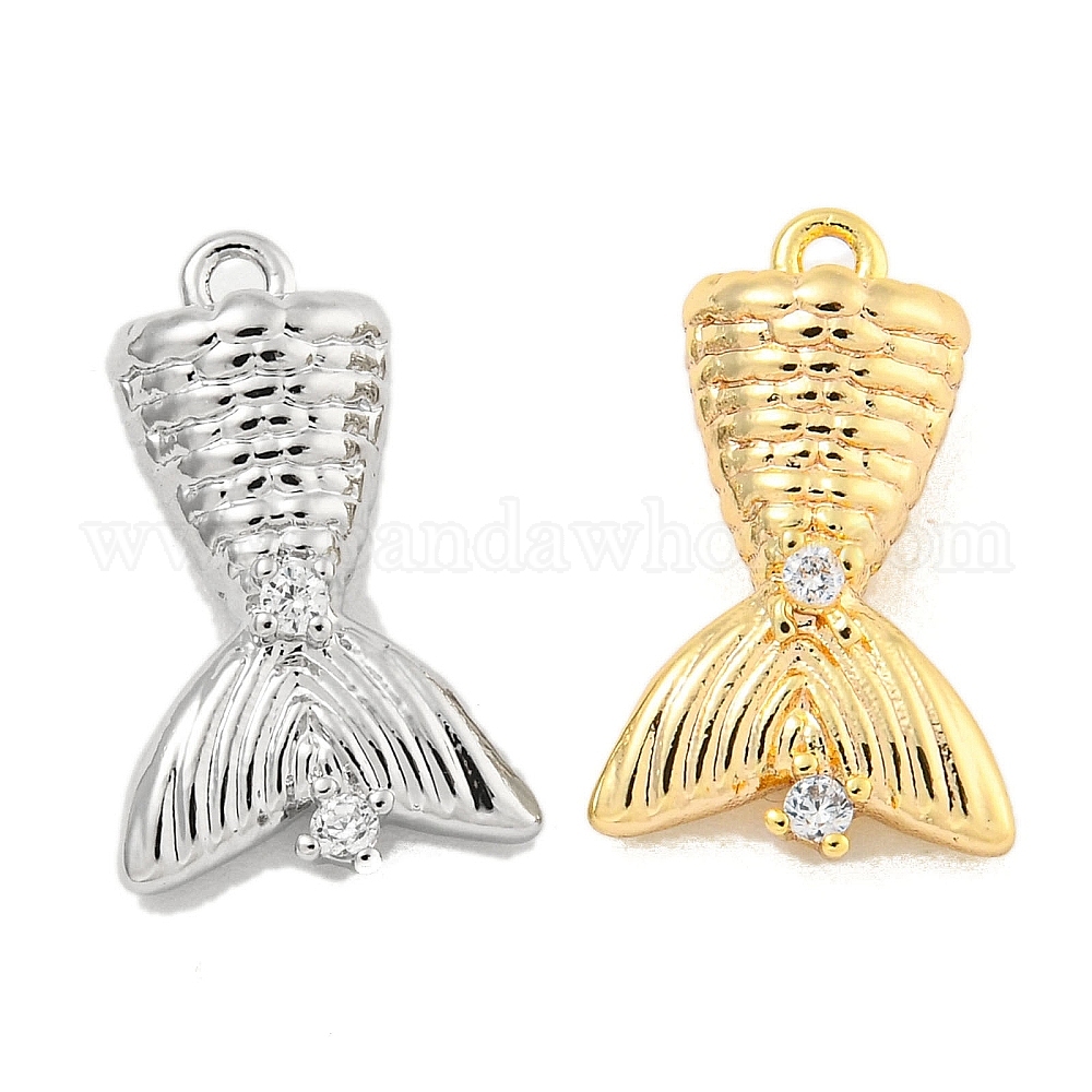 Латунные микропаве прозрачные подвески с фианитом, рыбий хвост