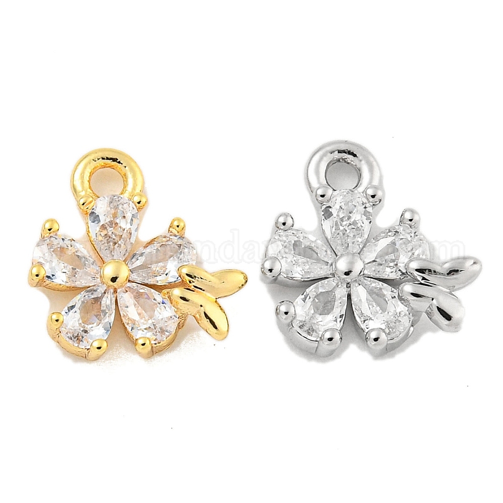Латунные микропаве прозрачные подвески с фианитом, цветок