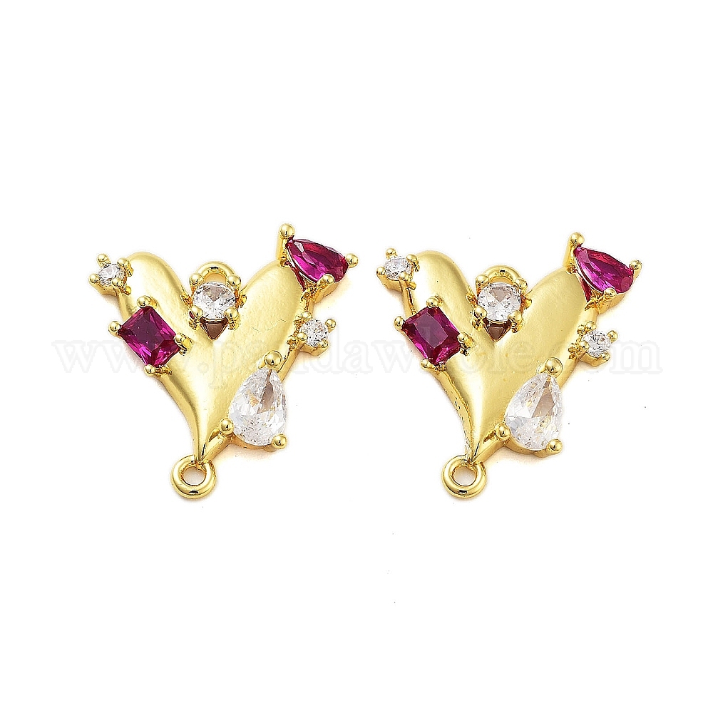 • Настоящее золото 18K Стойки обшивки латунь кубического циркония подвески, без кадмия и без свинца, сердце, фуксиново-красные, реальный 18 k позолоченный, 20.5x19x4 мм, отверстие : 1.2 мм