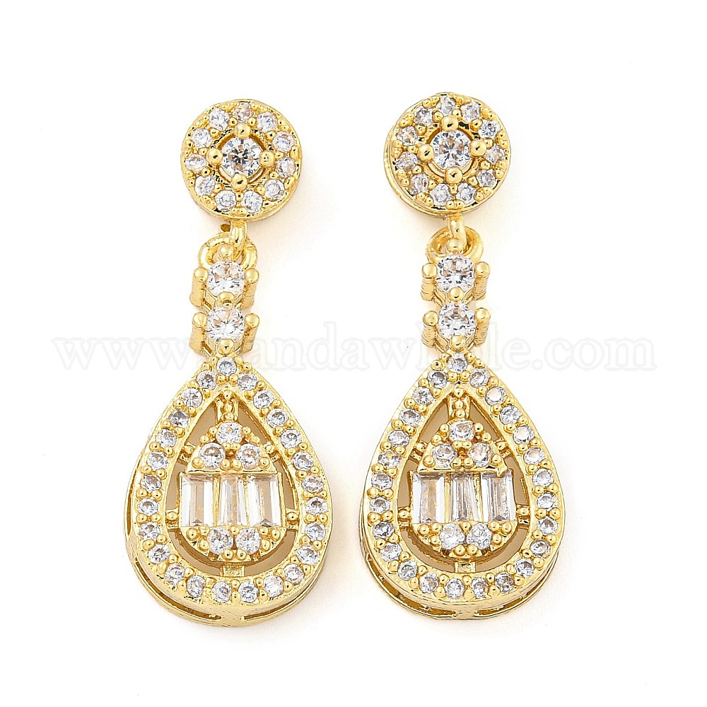 • Настоящее золото 18K Покрытие стойки латунь микропаве прозрачные кубические циркониевые подвески, долговечный, без свинца и без кадмия, плоский круглый с подвесками в виде слезинок, реальный 18 k позолоченный, 28x10x4 мм, отверстие : 5x2.5 мм
