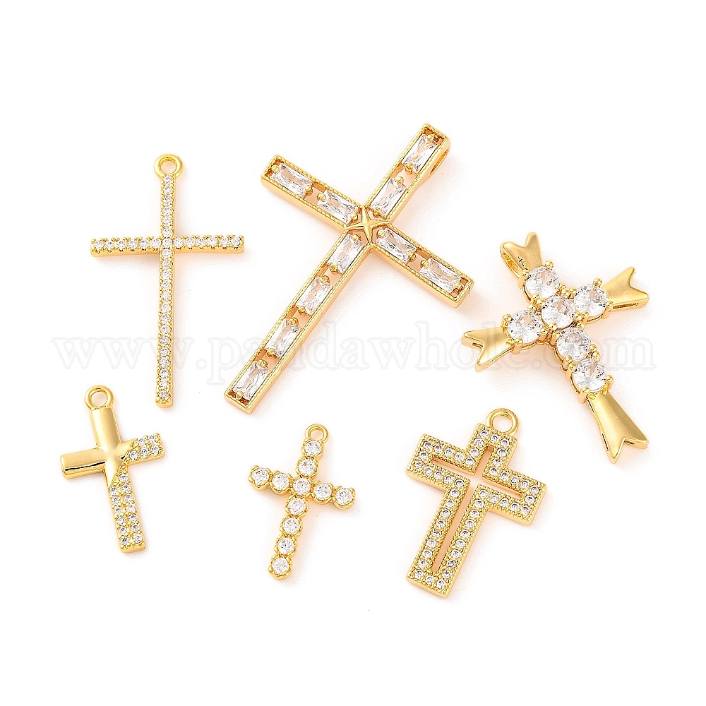 Латунные микропаве прозрачные подвески с фианитом, крестик