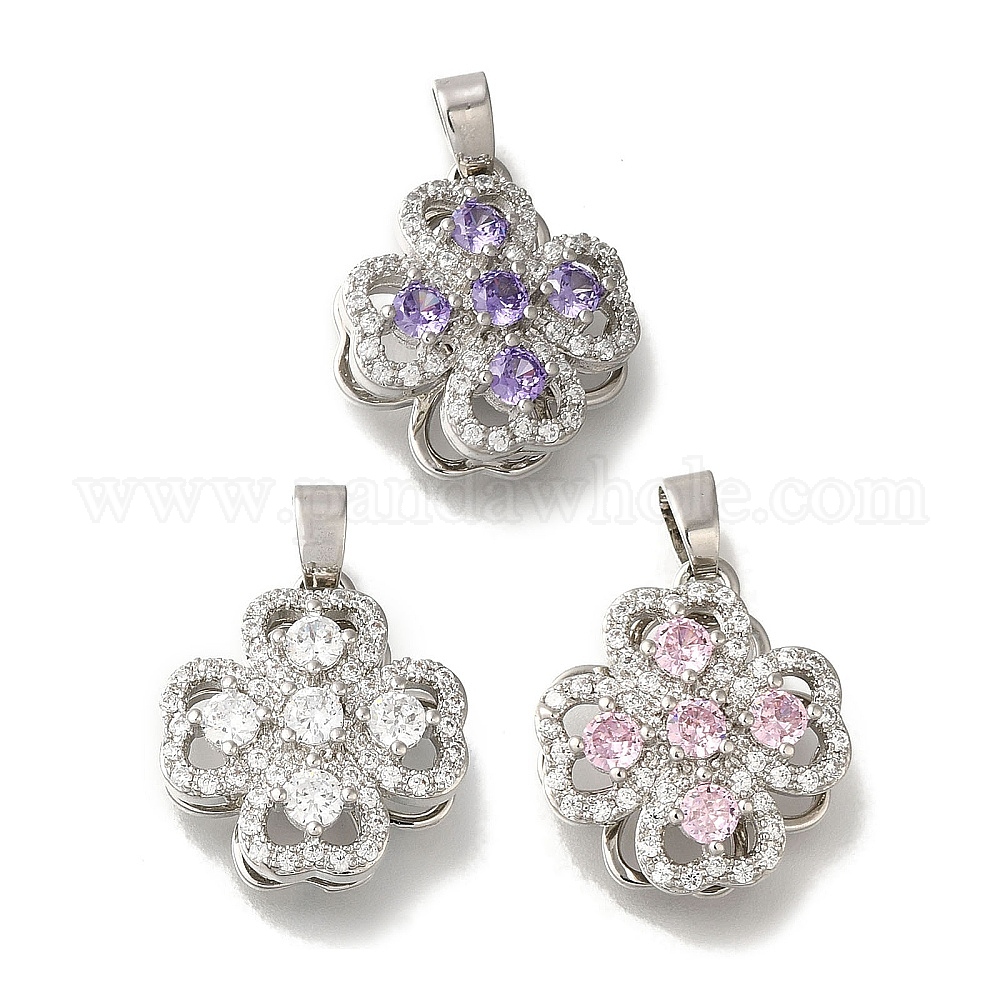 Подвеска из латуни с микропаве из кубического циркония, без свинца и без кадмия, долговечный, цветок