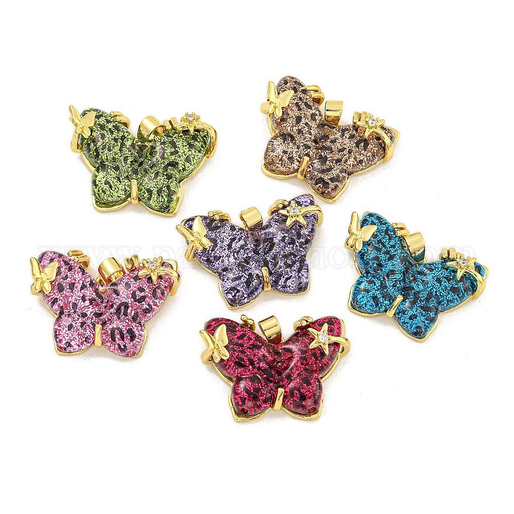• (52) Непрозрачная лаванда Подвеска-бабочка с подвеской из латуни и циркония, cmолой, долговечный, без свинца и без кадмия, реальный 18 k позолоченный, разноцветные, 19.5x27.5x7 мм, отверстие : 3x4 мм