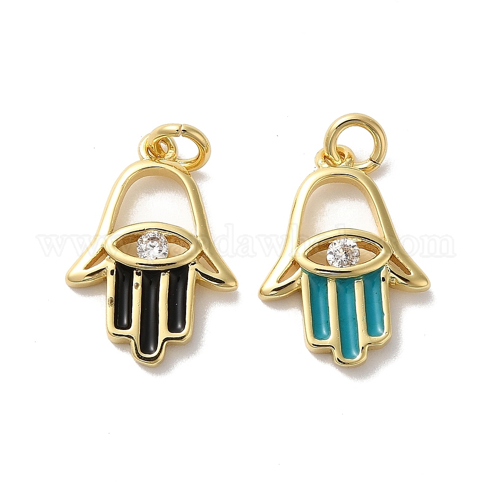 Латунный кубический цирконий, с эмалью, с целью перехода в кольце, без кадмия и без свинца, долговечный, хамса рука, реальный 18 k позолоченный (02W5PF)