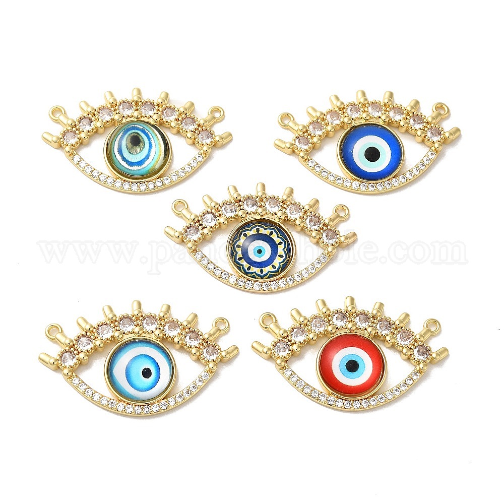 Покрытие стойки латунь паве прозрачный кубический цирконий и стеклянные подвески, Очарование глаз, реальный 18 k позолоченный, без кадмия и без свинца, долговечный