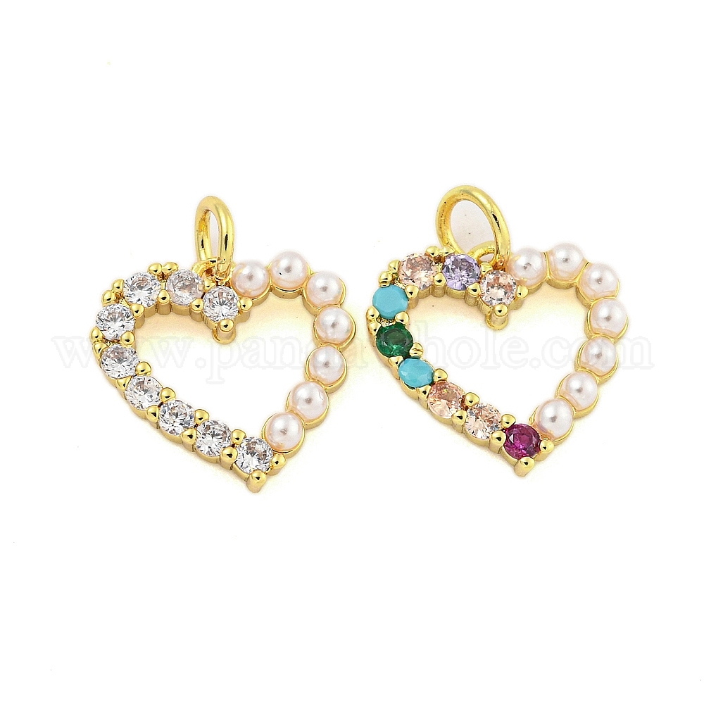Подвески в форме сердца с латунным микропаве и кубическим цирконием, со стеклянным жемчугом, без кадмия и без свинца, долговечный