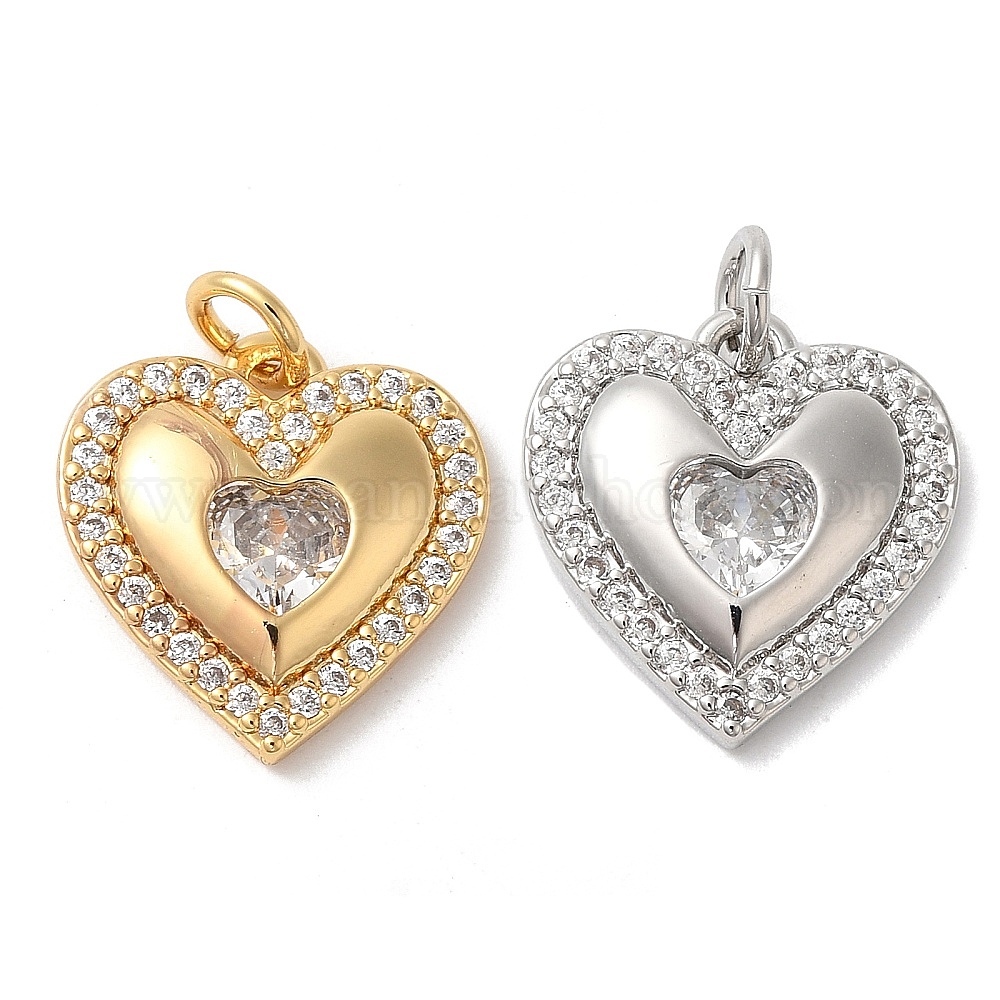 Подвески из латуни с покрытием из прозрачного кубического циркония, с целью перехода в кольце, долговечный, без свинца и без кадмия, сердце (02WC3E)