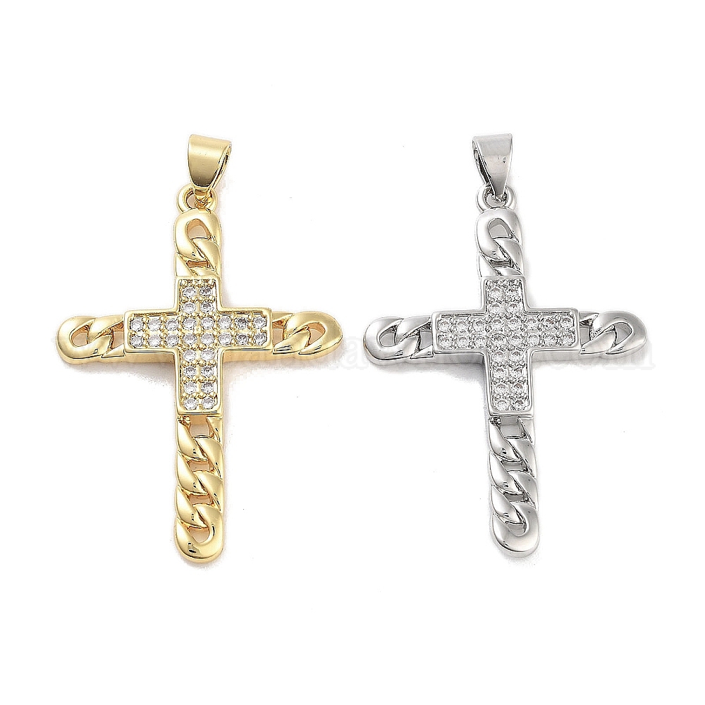 Подвески из латуни с покрытием из прозрачного кубического циркония, долговечный, без свинца и без кадмия, крестик
