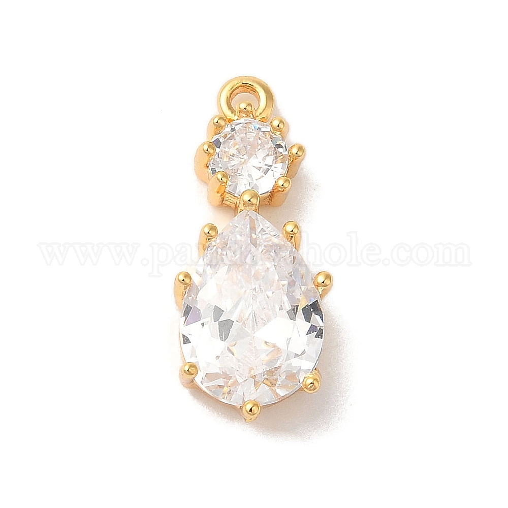 Латунные микропаве прозрачные подвески с фианитом, без никеля , слеза