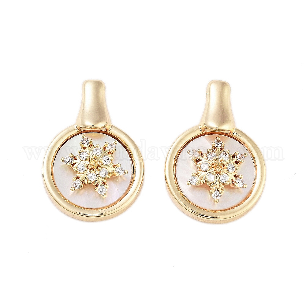 Латунные микропаве прозрачные подвески с фианитом, без кадмия, без никеля и без свинца, с оболочкой, плоские круглые со снежинкой