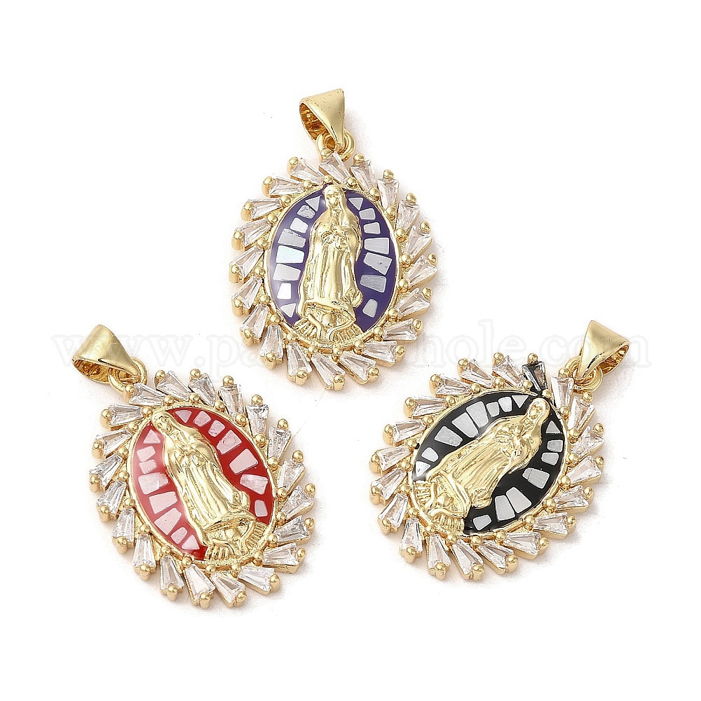 Овальные подвески с латунными микропаве Девы Марии и кубическими циркониями, с эмалью и ракушкой, долговечный, без свинца и без кадмия, реальный 18 k позолоченный