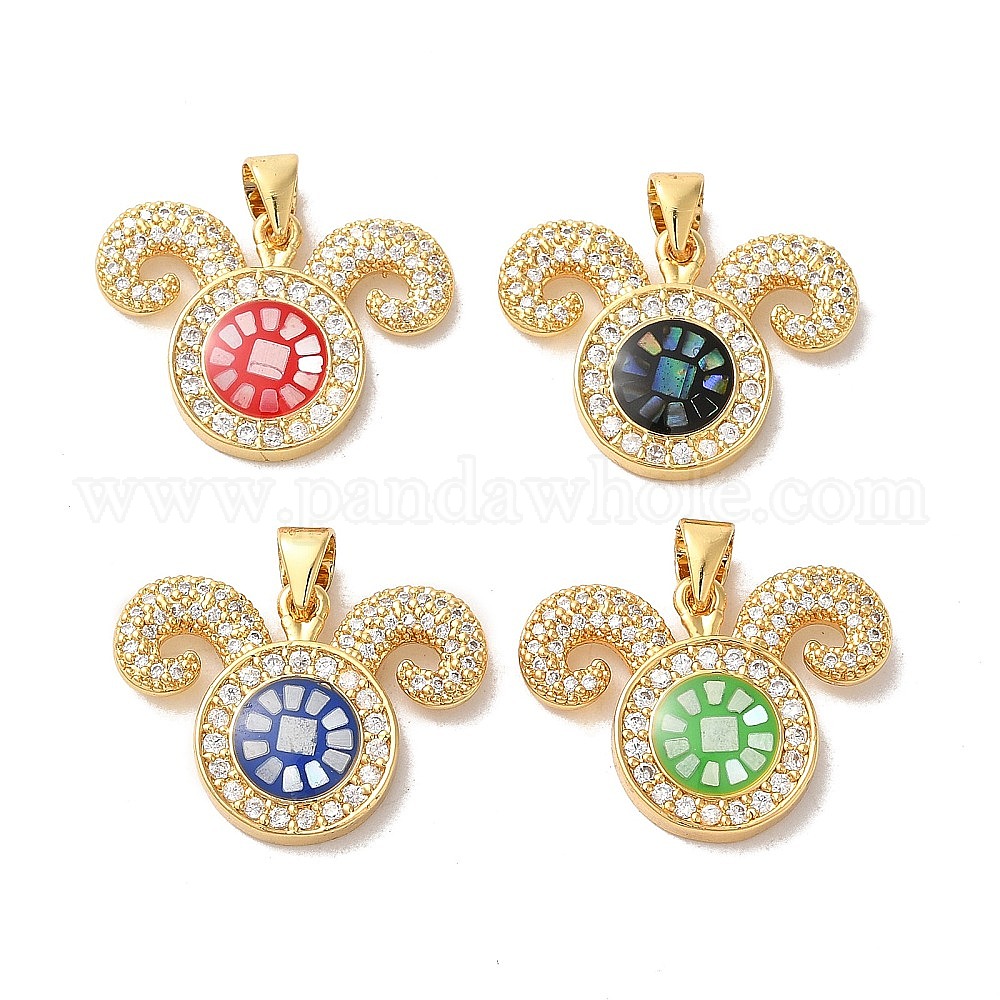 Латунные микро проложить кубического циркония подвески, с эмалью и ракушкой, долговечный, без свинца и без кадмия, реальный 18 k позолоченный, овца