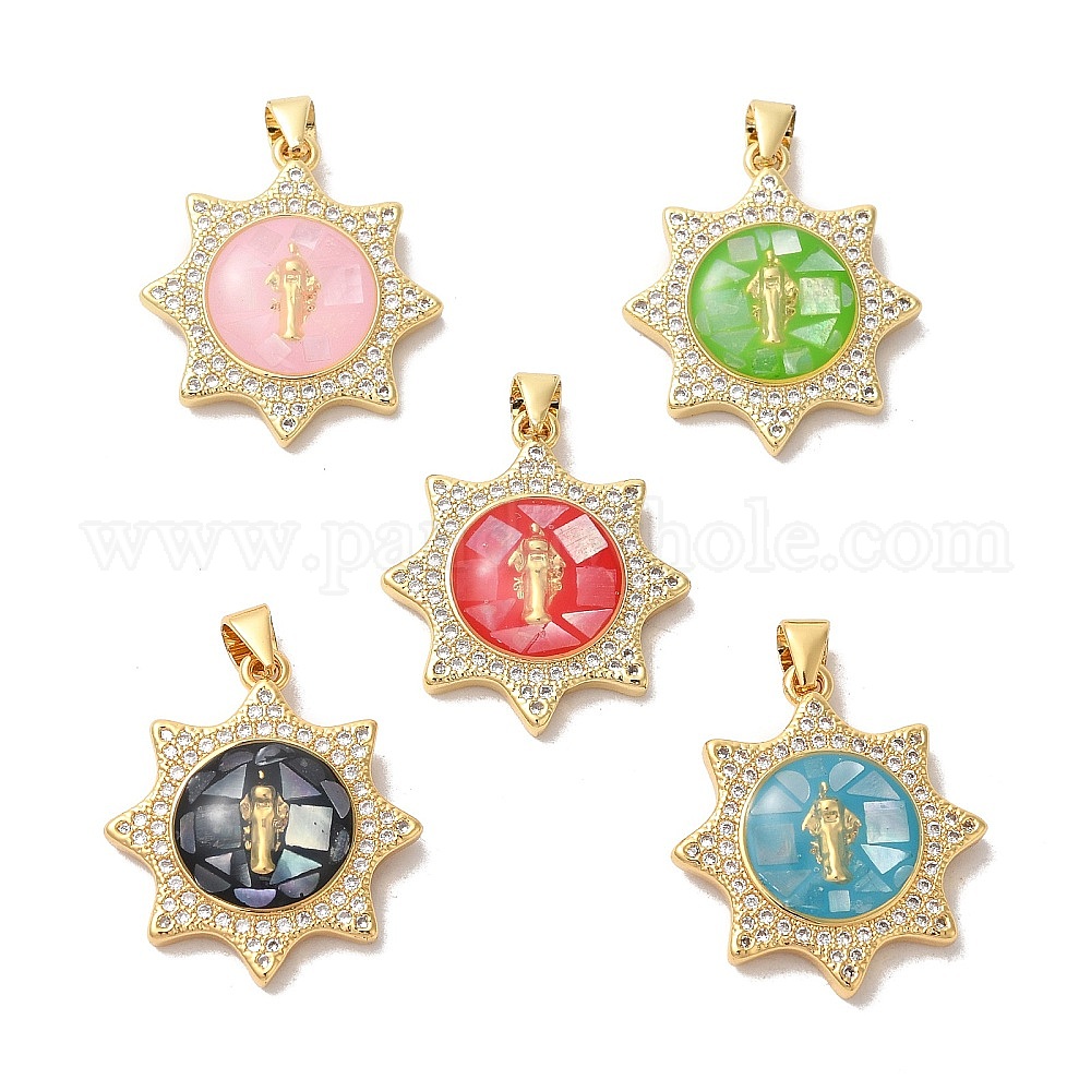 Стойки обшивки латунь кубического циркония подвески, с эмалью и ракушкой, долговечный, без свинца и без кадмия, реальный 18 k позолоченный, солнце с девой марией
