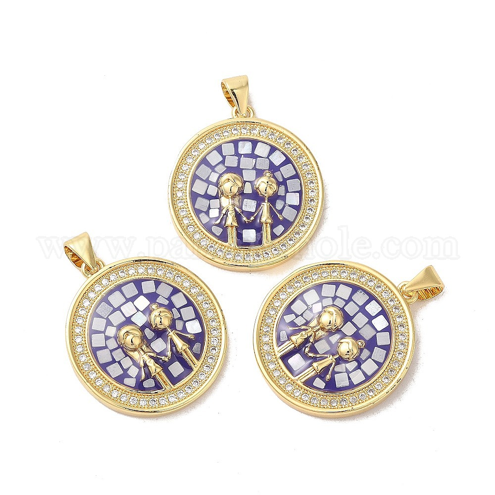 Стойки обшивки латунь кубического циркония подвески, с эмалью и ракушкой, долговечный, без свинца и без кадмия, реальный 18 k позолоченный, плоские круглые с девушкой