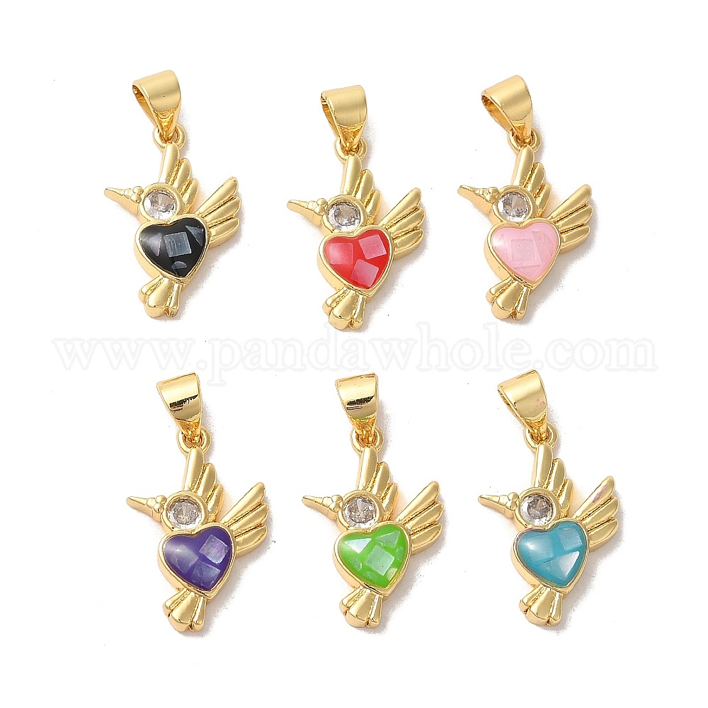Стойки обшивки латунь кубического циркония подвески, с эмалью и ракушкой, долговечный, без свинца и без кадмия, реальный 18 k позолоченный, птица с сердцем