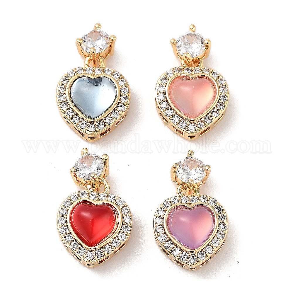 • Pink Латунные подвески с фианитами, без кадмия, без никеля и без свинца, cmолой, реальный 18 k позолоченный, сердце, розовые, 12x10x6 мм, отверстие : 2 мм