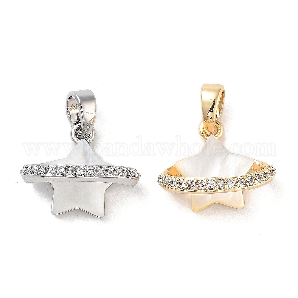Латунные микропаве прозрачные подвески с фианитом, без кадмия, без никеля и без свинца, с оболочкой, звезда очарование (02WK9S)