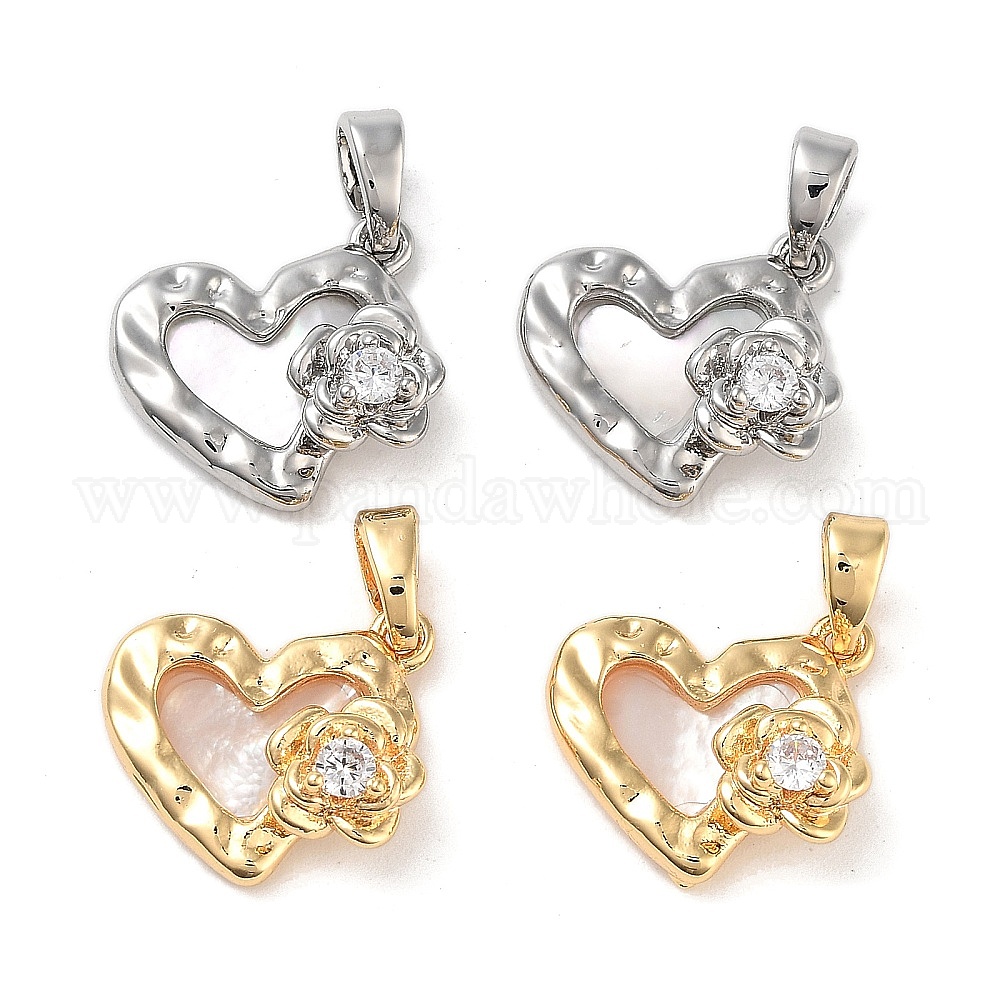 Латунные микропаве прозрачные кубические циркониевые подвески, без кадмия, без никеля и без свинца, с оболочкой, Сердце со цветками