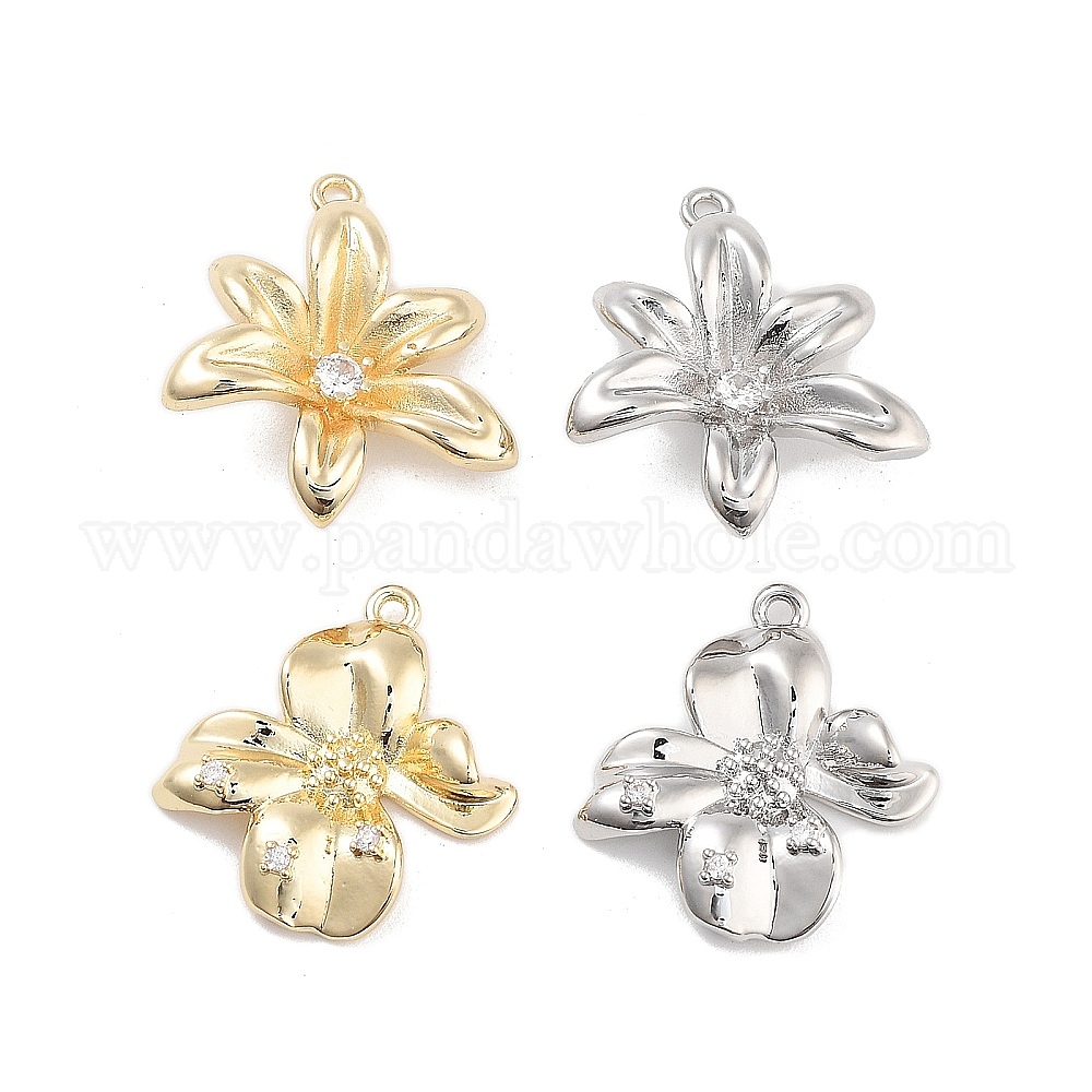 Подвески из латуни с прозрачным фианитом, без кадмия, без никеля и без свинца, цветок