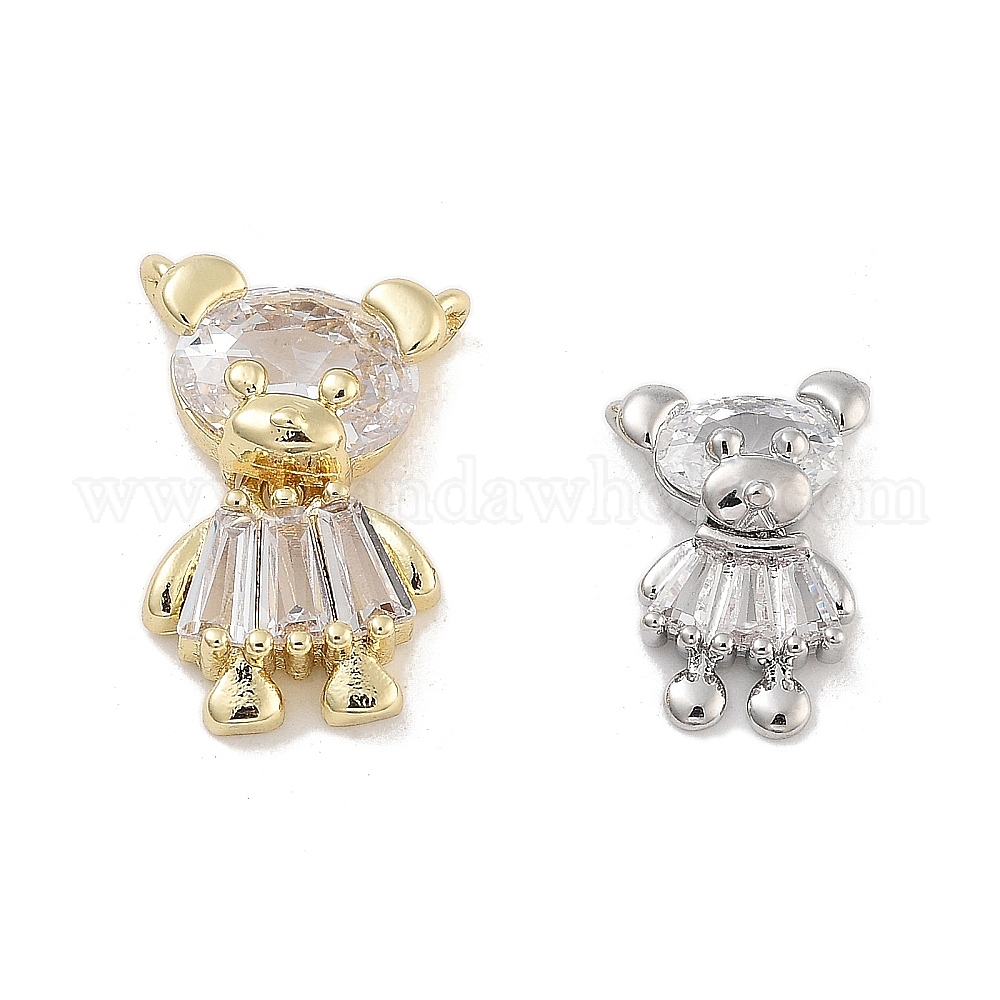 Подвески из латуни с прозрачным фианитом, без кадмия, без никеля и без свинца, медведь