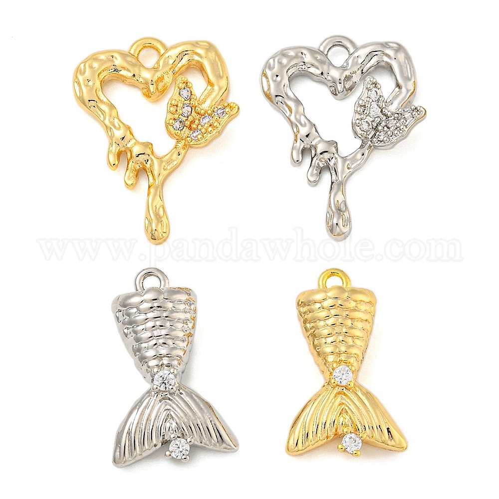 Латунь с подвесками из прозрачного кубического циркония, сердце/рыбий хвост