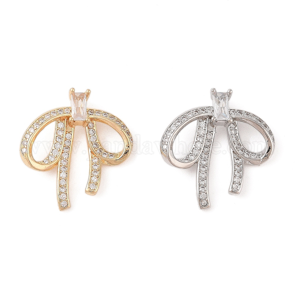 Латунные микропаве прозрачные подвески с фианитом, бантом