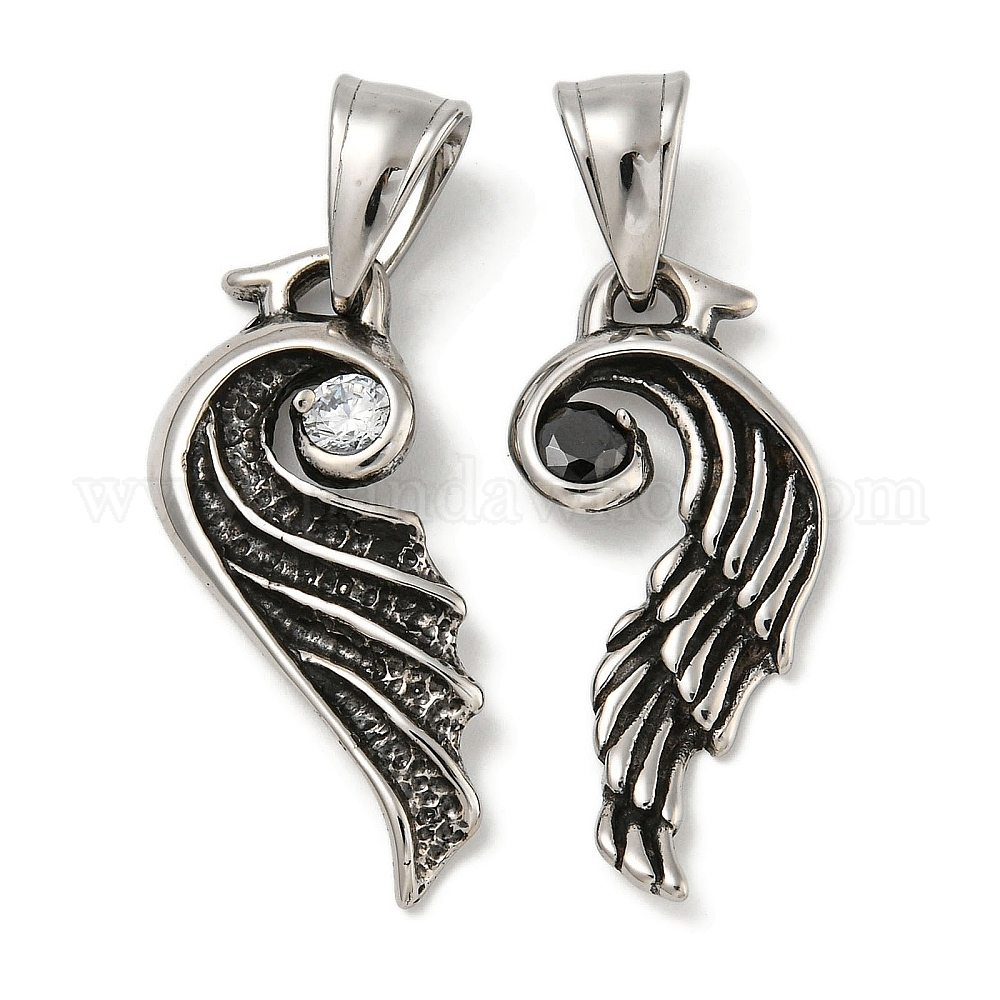 316 хирургические подвески из нержавеющей стали с микропаве из циркония, крыло, античное серебро