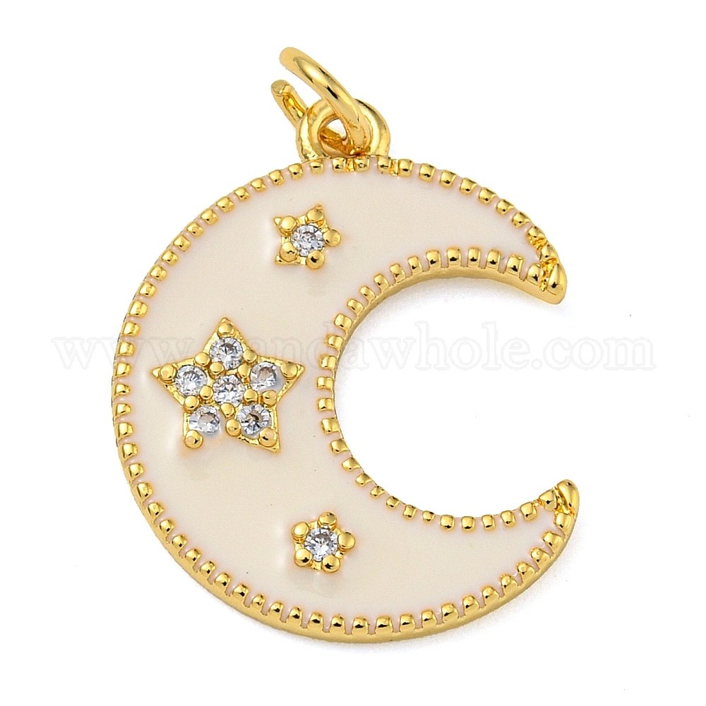 Покрытие стойки латунь микропаве прозрачные подвески из кубического циркония, с эмалью и кольцом для прыжков, без свинца и без кадмия, долговечный, луна