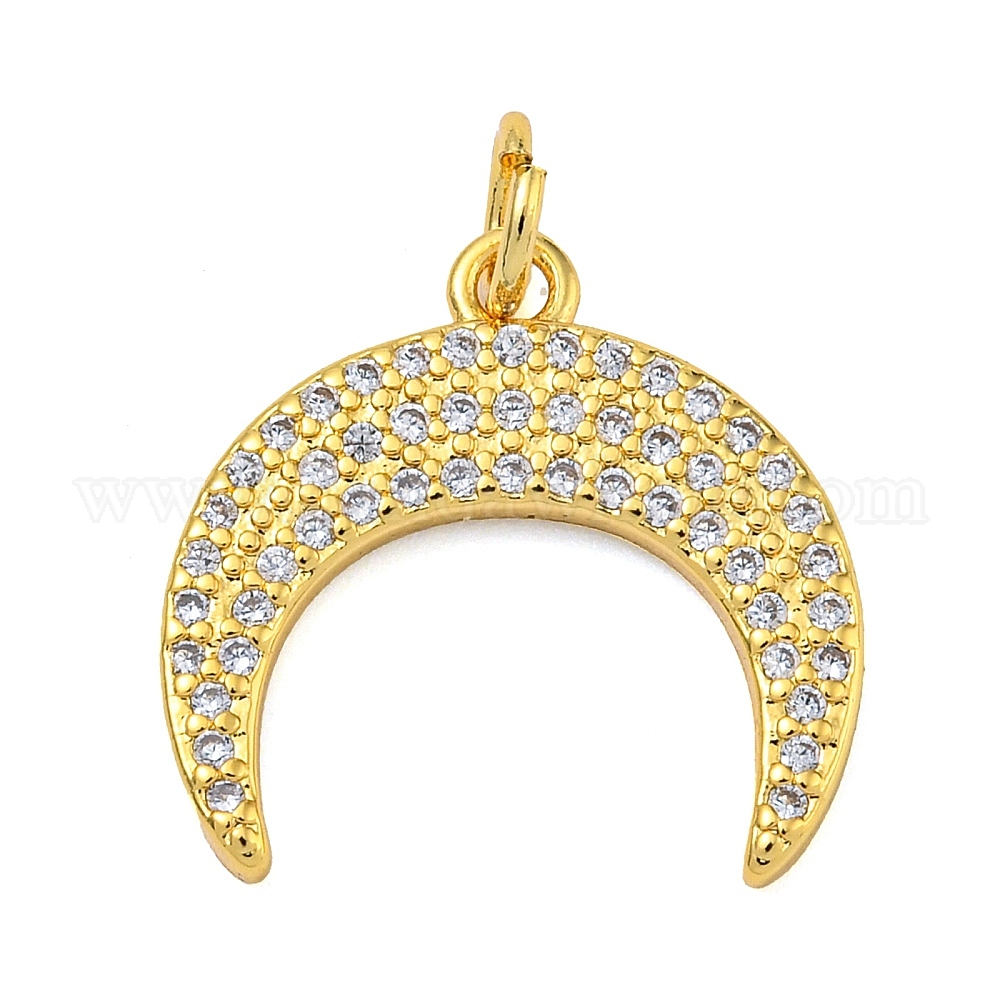 • Настоящее золото 18K Стойка металлическая латунная микропрофилированная кубическая циркония подвески, без свинца и без кадмия, долговечный, двойной рог / полумесяц, реальный 18 k позолоченный, 17x17.5x2 мм, отверстие : 3 мм