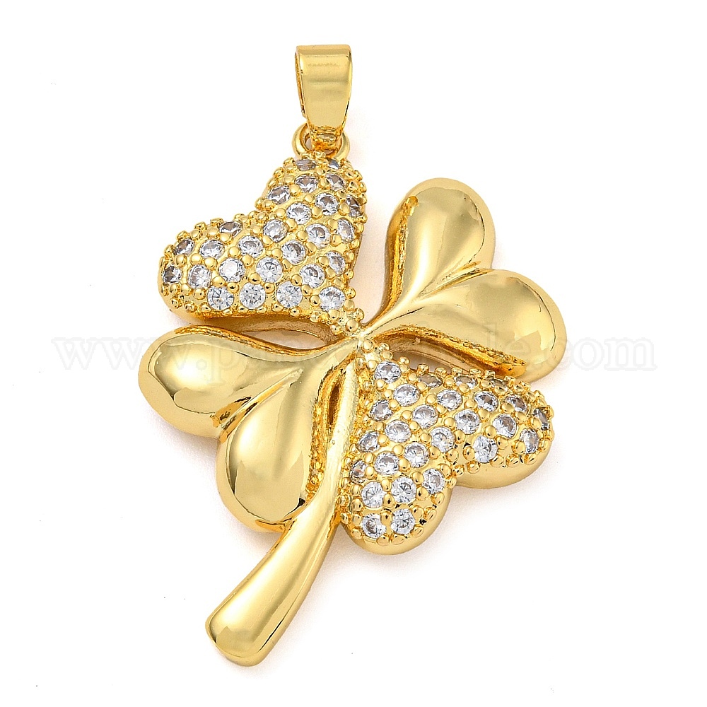 Покрытие стойки латунь микропаве прозрачные подвески из кубического циркония, без свинца и без кадмия, долговечный, клевер