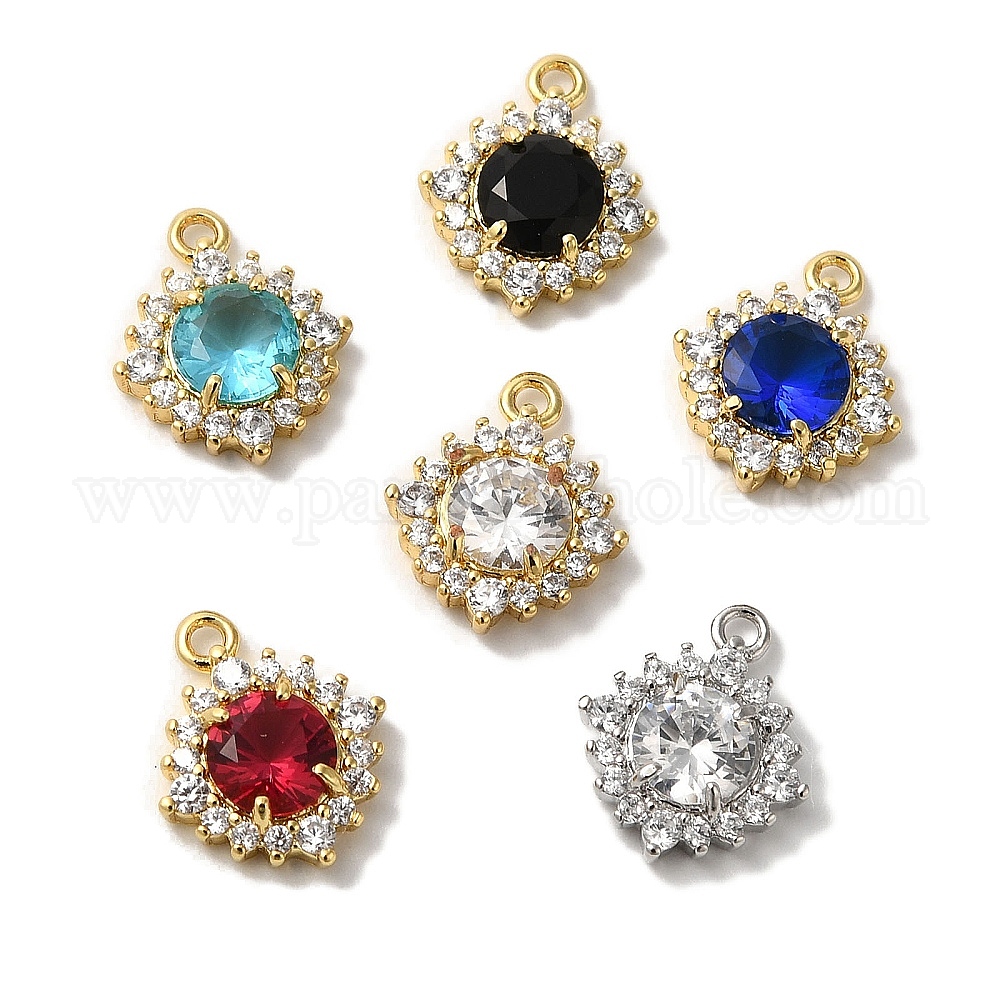 Латунные микропаве прозрачные подвески с фианитом, реальный 18 k позолоченный, ромб