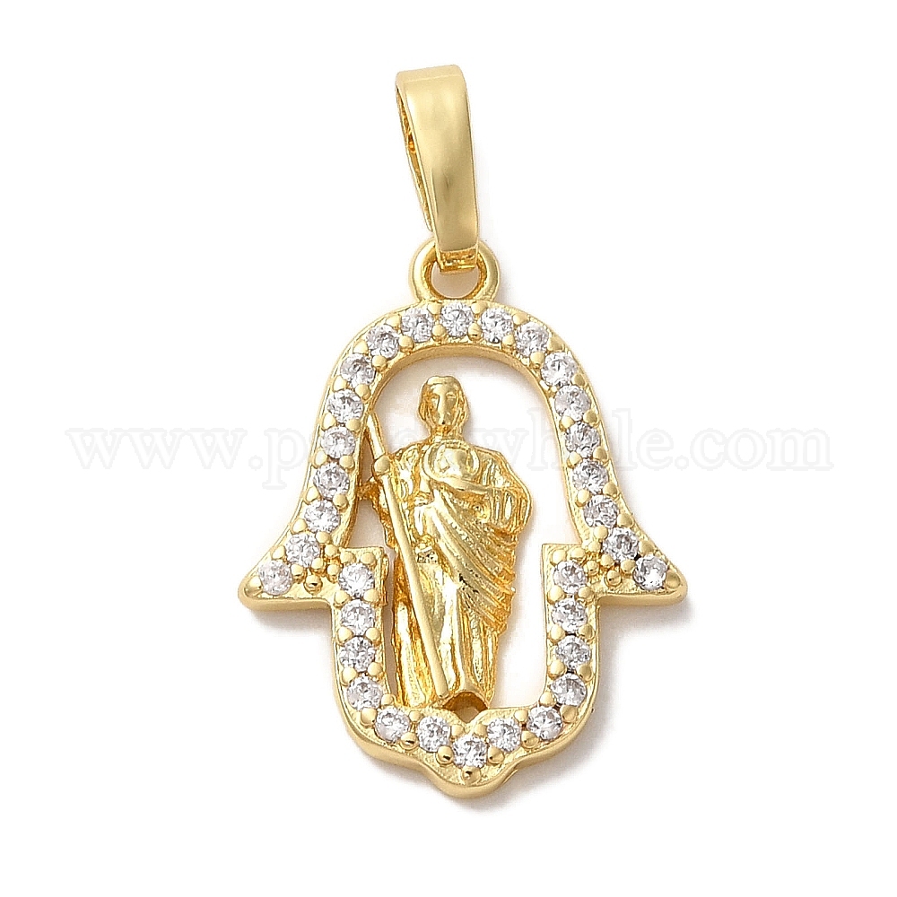 Латунные микро проложить кубического циркония подвески, долговечный, без кадмия и без свинца, ханмса рука с иисусом