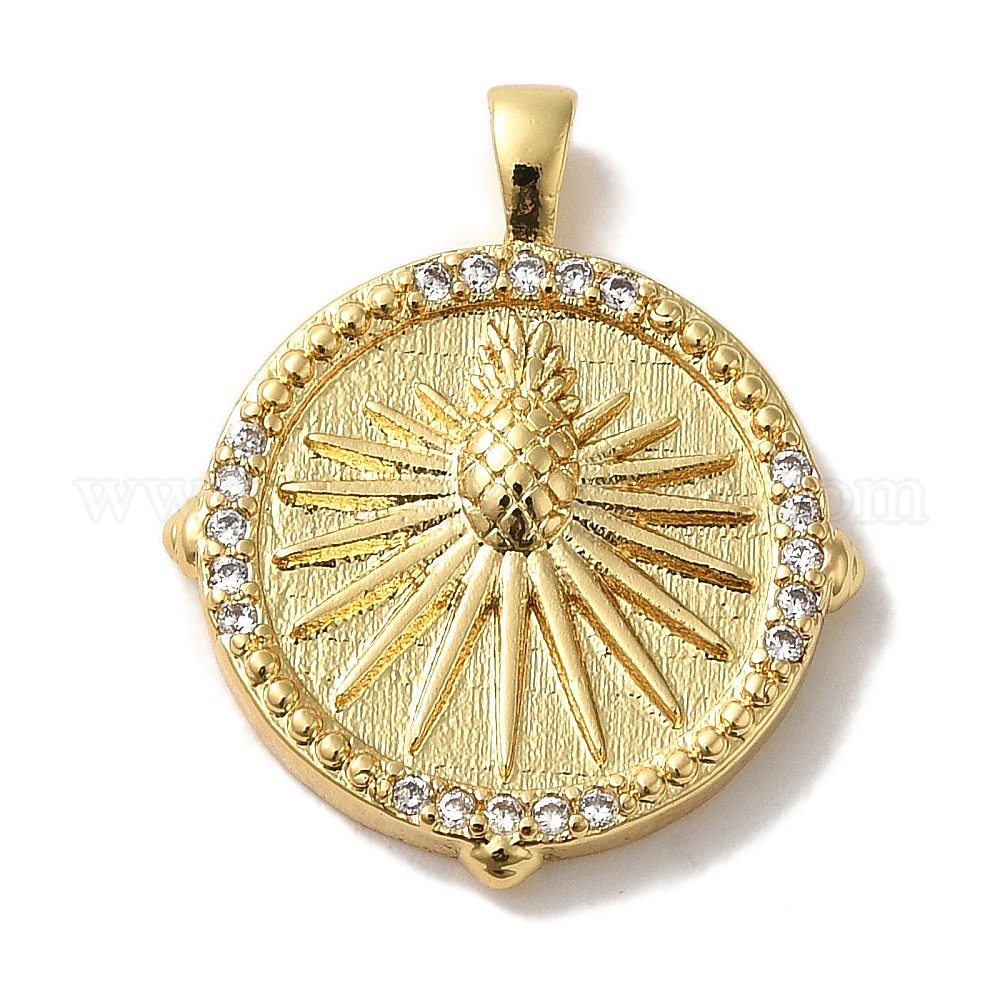 • Настоящее золото 18K Латунные микро проложить кубического циркония подвески, действительно долговечное покрытие, без кадмия и без свинца, круглый с ананасом, реальный 18 k позолоченный, 22x18.5x3.5 мм, отверстие : 3.5x1.5 мм