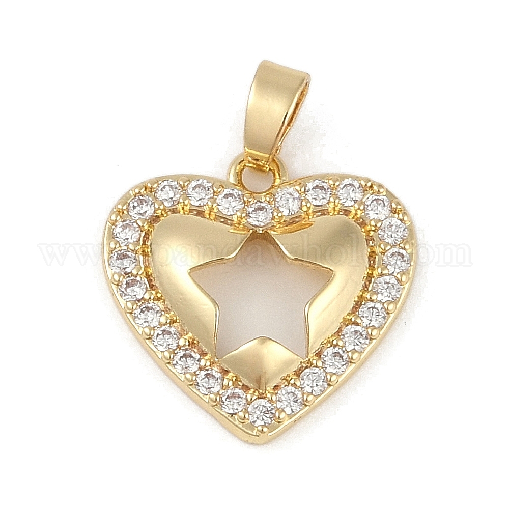 Латунные микропаве прозрачные подвески с фианитом, без кадмия, без никеля и без свинца, Сердце звездочкой