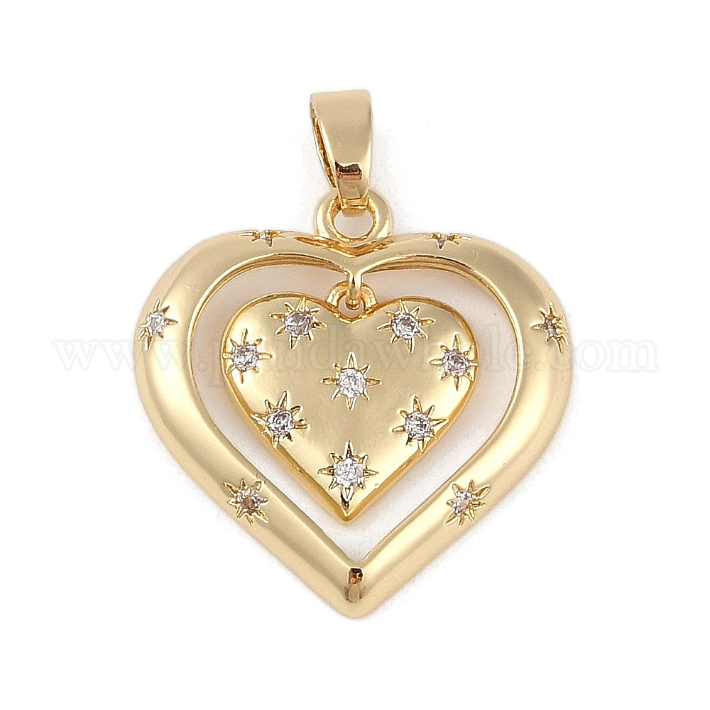• Настоящее золото 18K Латунные микропаве прозрачные подвески с фианитом, без кадмия, без никеля и без свинца, сердце, реальный 18 k позолоченный, 20x19.5x2.5 мм, отверстие : 3.5x3 мм