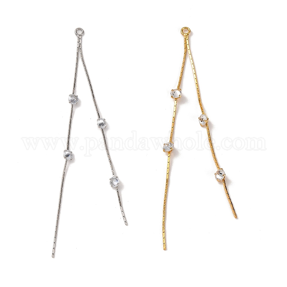 • Настоящее золото 18K Большие подвески из латуни с микропейвом и прозрачным фианитом, плоская круглая кисточка, реальный 18 k позолоченный, 93x5x3.5 мм, отверстие : 1.8~2 мм