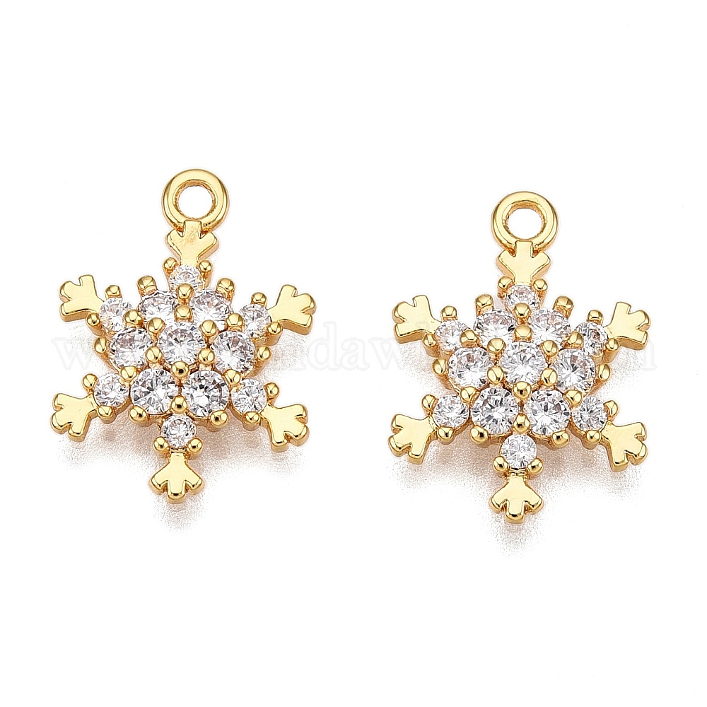 Подвески из прозрачного кубического циркония с микропаве из латуни на рождественскую тематику, снежинка