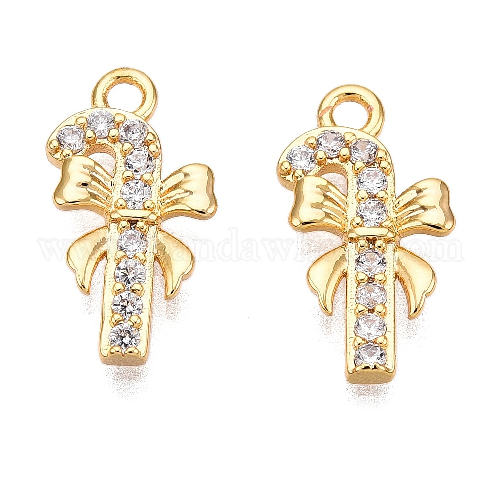 Подвески из прозрачного кубического циркония с микропаве из латуни на рождественскую тематику, зонт с бантом