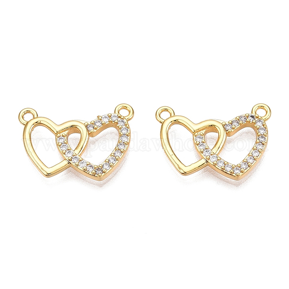 • Настоящее золото 18K Латунные микропаве прозрачные подвески с фианитом, сердце, реальный 18 k позолоченный, 12.5x17.5x2.5 мм, отверстие : 1 мм