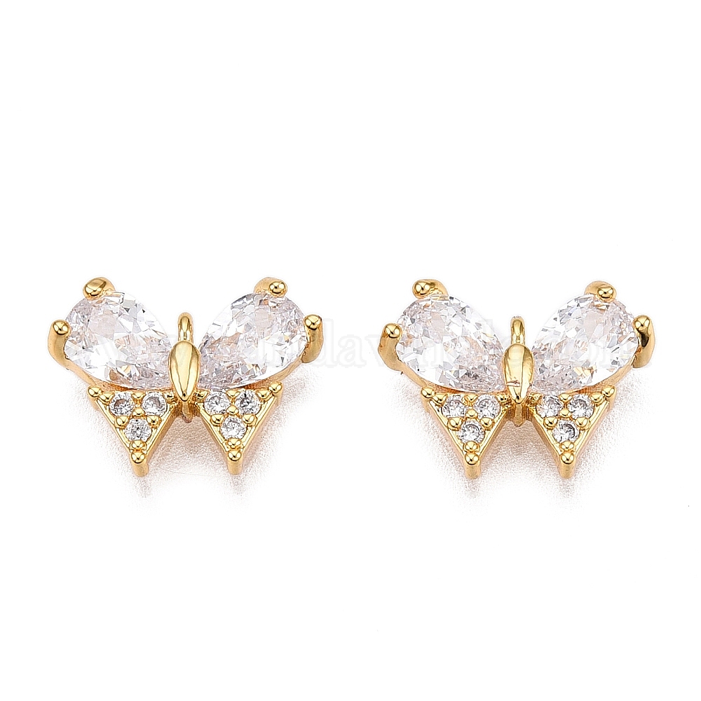 • Настоящее золото 18K Латунные микропаве прозрачные кубические циркониевые подвески, бабочка, реальный 18 k позолоченный, 9.5x12.5x3.5 мм, отверстие : 1 мм